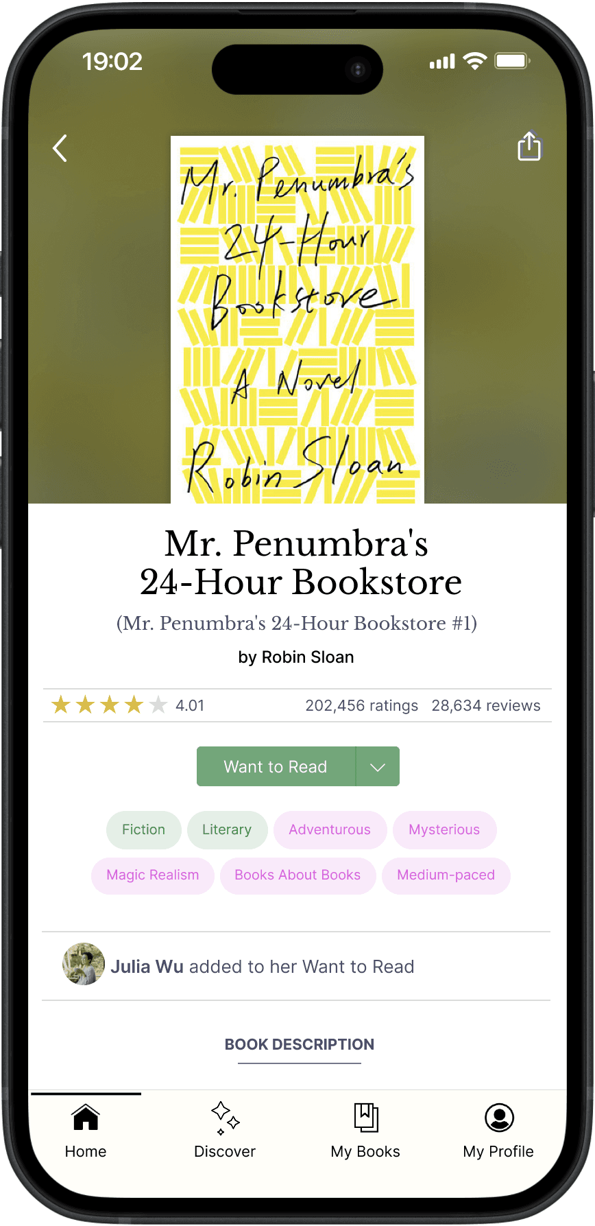 Books are tagged by genre, themes, mood, and pace, with an emphasis on genre.